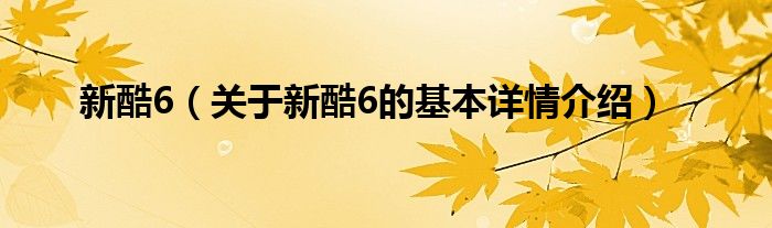 本文关于新酷6的基本详情介绍就讲解完毕,希望对大家有所帮助。