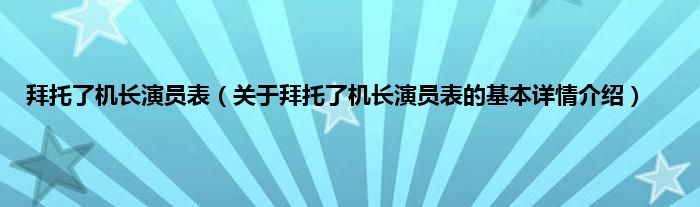 本文关于拜托了机长演员表的基本详情介绍就讲解完毕,希望对大家有所帮助。