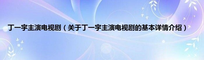 本文关于丁一宇主演电视剧的基本详情介绍就讲解完毕,希望对大家有所帮助。