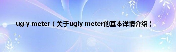 本文关于ugly meter的基本详情介绍就讲解完毕,希望对大家有所帮助。