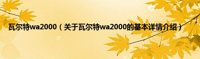 本文关于瓦尔特wa2000的基本详情介绍就讲解完毕,希望对大家有所帮助。