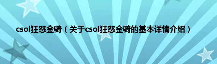 本文关于csol狂怒金骑的基本详情介绍就讲解完毕,希望对大家有所帮助。