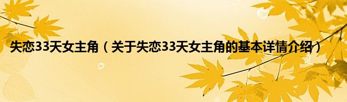 本文关于失恋33天女主角的基本详情介绍就讲解完毕,希望对大家有所帮助。