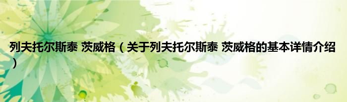 本文关于列夫托尔斯泰 茨威格的基本详情介绍就讲解完毕,希望对大家有所帮助。