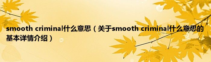 本文关于smooth criminal什么意思的基本详情介绍就讲解完毕,希望对大家有所帮助。