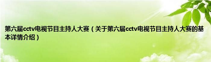 本文关于第六届cctv电视节目主持人大赛的基本详情介绍就讲解完毕,希望对大家有所帮助。