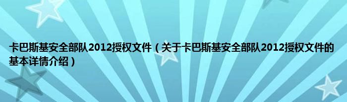 本文关于卡巴斯基安全部队2012授权文件的基本详情介绍就讲解完毕,希望对大家有所帮助。