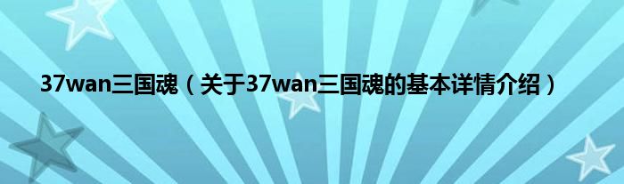37wan三国魂(关于37wan三国魂的基本详情介绍)