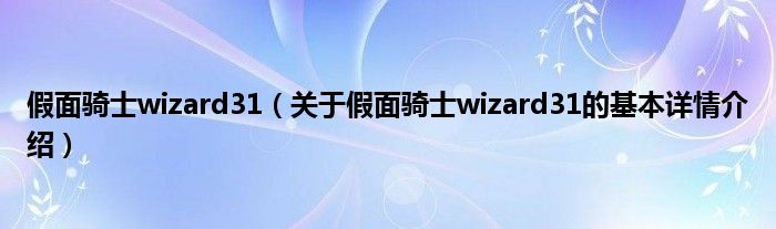 本文关于假面骑士wizard31的基本详情介绍就讲解完毕,希望对大家有所帮助。