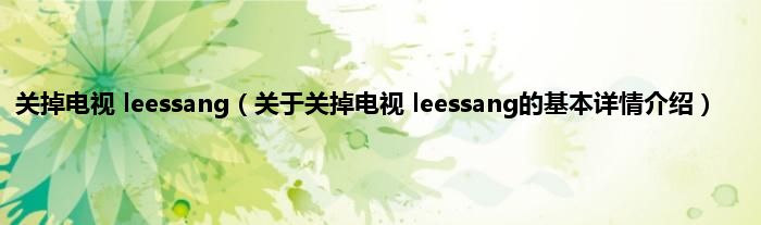 本文关于关掉电视 leessang的基本详情介绍就讲解完毕,希望对大家有所帮助。