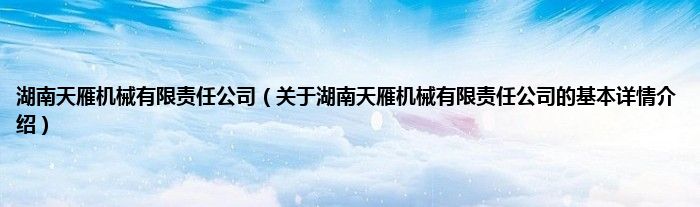 本文关于湖南天雁机械有限责任公司的基本详情介绍就讲解完毕,希望对大家有所帮助。