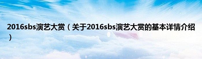 2016sbs演艺大赏(关于2016sbs演艺大赏的基本详情介绍)