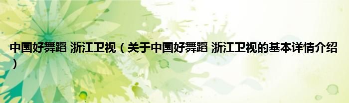 本文关于中国好舞蹈 浙江卫视的基本详情介绍就讲解完毕,希望对大家有所帮助。