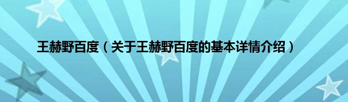 本文关于王赫野百度的基本详情介绍就讲解完毕,希望对大家有所帮助。
