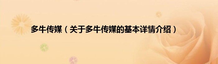 大家好我是小蝌蚪,多牛传媒,关于多牛传媒的基本详情介绍很多人还不知道,那么现在让我们一起来看看吧!
