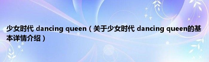 本文关于少女时代 dancing queen的基本详情介绍就讲解完毕,希望对大家有所帮助。