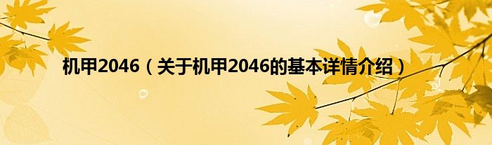 本文关于机甲2046的基本详情介绍就讲解完毕,希望对大家有所帮助。