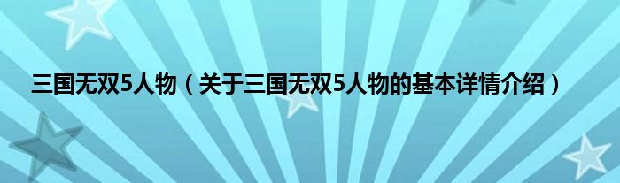 本文关于三国无双5人物的基本详情介绍就讲解完毕,希望对大家有所帮助。