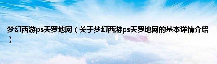 本文关于梦幻西游ps天罗地网的基本详情介绍就讲解完毕,希望对大家有所帮助。