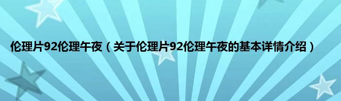 本文关于伦理片92伦理午夜的基本详情介绍就讲解完毕,希望对大家有所帮助。