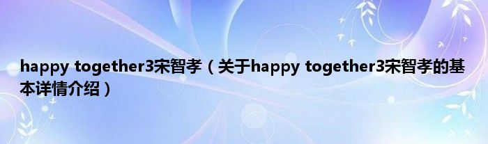本文关于happy together3宋智孝的基本详情介绍就讲解完毕,希望对大家有所帮助。