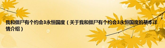 本文关于我和僵尸有个约会3永恒国度的基本详情介绍就讲解完毕,希望对大家有所帮助。