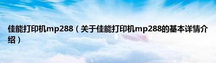 本文关于佳能打印机mp288的基本详情介绍就讲解完毕,希望对大家有所帮助。