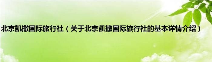本文关于北京凯撒国际旅行社的基本详情介绍就讲解完毕,希望对大家有所帮助。