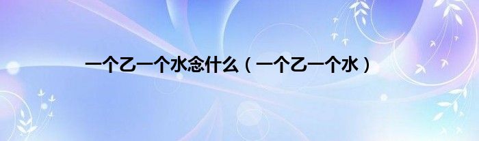 以上就是【一个乙一个水念什么,一个乙一个水】相关内容。