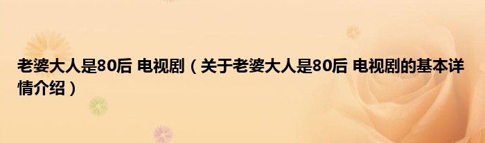 本文关于老婆大人是80后 电视剧的基本详情介绍就讲解完毕,希望对大家有所帮助。