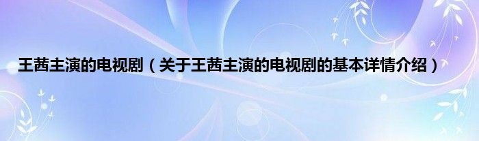 本文关于王茜主演的电视剧的基本详情介绍就讲解完毕,希望对大家有所帮助。