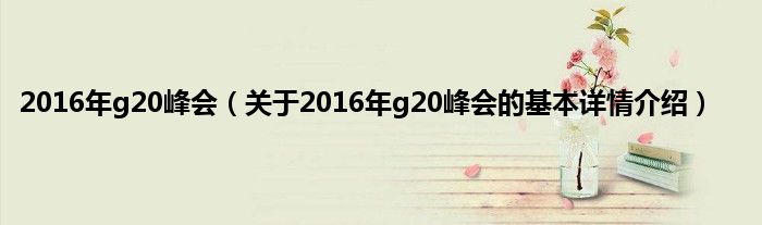 本文关于2016年g20峰会的基本详情介绍就讲解完毕,希望对大家有所帮助。