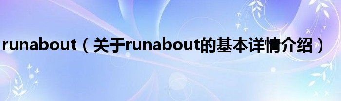 本文关于runabout的基本详情介绍就讲解完毕,希望对大家有所帮助。