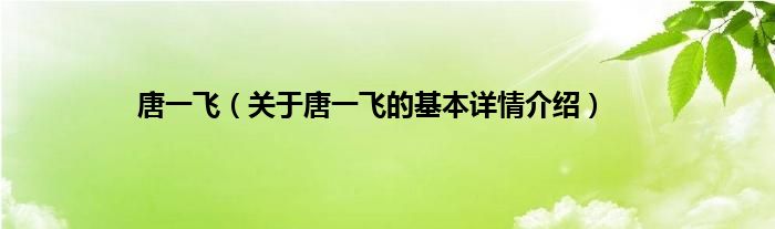 本文关于唐一飞的基本详情介绍就讲解完毕,希望对大家有所帮助。