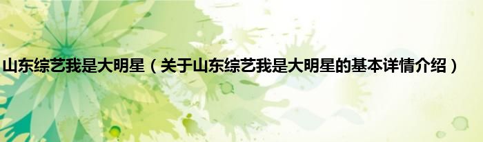 本文关于山东综艺我是大明星的基本详情介绍就讲解完毕,希望对大家有所帮助。