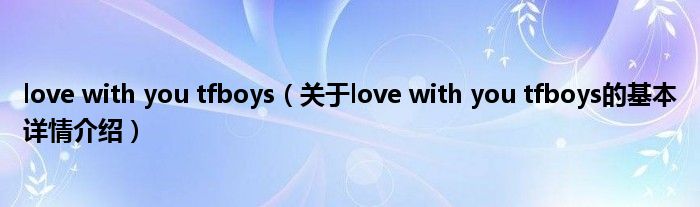 本文关于love with you tfboys的基本详情介绍就讲解完毕,希望对大家有所帮助。