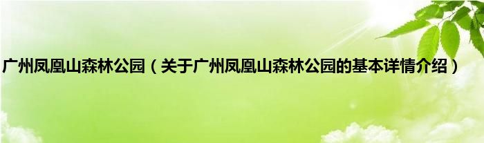 本文关于广州凤凰山森林公园的基本详情介绍就讲解完毕,希望对大家有所帮助。