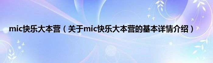 本文关于mic快乐大本营的基本详情介绍就讲解完毕,希望对大家有所帮助。