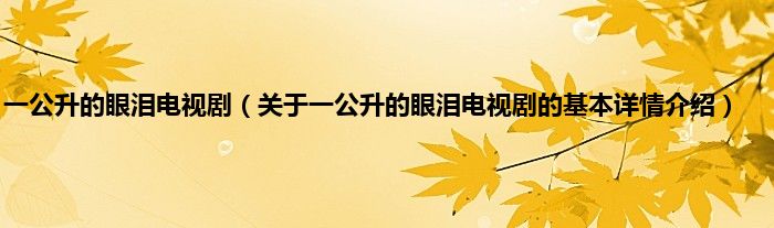 本文关于一公升的眼泪电视剧的基本详情介绍就讲解完毕,希望对大家有所帮助。