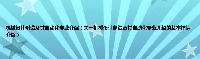 本文关于机械设计制造及其自动化专业介绍的基本详情介绍就讲解完毕,希望对大家有所帮助。