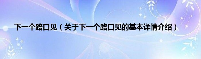 本文关于下一个路口见的基本详情介绍就讲解完毕,希望对大家有所帮助。