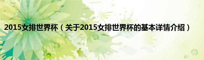 本文关于2015女排世界杯的基本详情介绍就讲解完毕,希望对大家有所帮助。