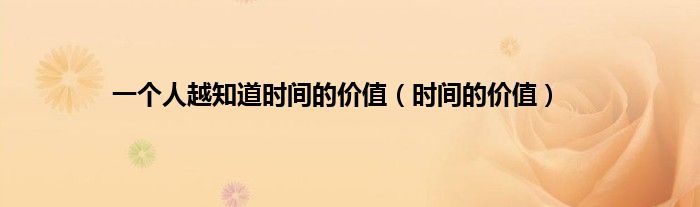 以上就是【一个人越知道时间的价值,时间的价值】相关内容。
