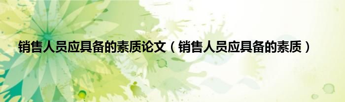 以上就是【销售人员应具备的素质论文,销售人员应具备的素质】相关内容。