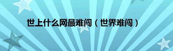大家好,小问来为大家解答以上问题。世上什么网最难闯,世界难闯这个很多人还不知道,现在让我们一起来看看吧!