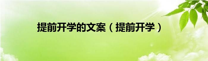 大家好,小问来为大家解答以上问题。提前开学的文案,提前开学这个很多人还不知道,现在让我们一起来看看吧!