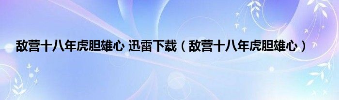 大家好,小问来为大家解答以上问题。敌营十八年虎胆雄心 迅雷下载,敌营十八年虎胆雄心这个很多人还不知道,现在让我们一起来看看吧!