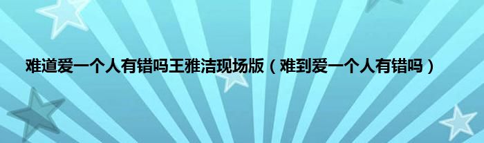 以上就是【难道爱一个人有错吗王雅洁现场版,难到爱一个人有错吗】相关内容。