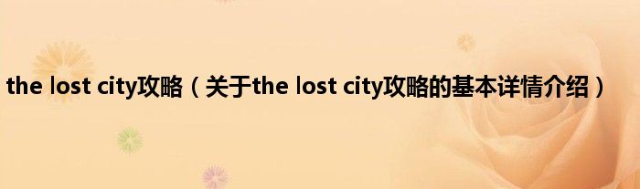 本文关于the lost city攻略的基本详情介绍就讲解完毕,希望对大家有所帮助。
