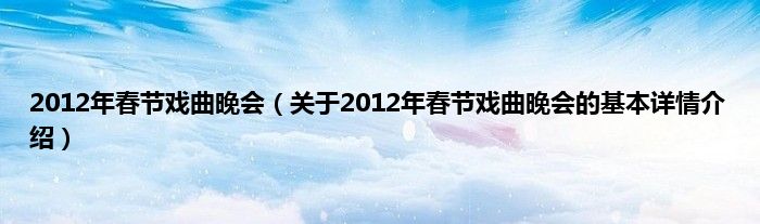 本文关于2012年春节戏曲晚会的基本详情介绍就讲解完毕,希望对大家有所帮助。